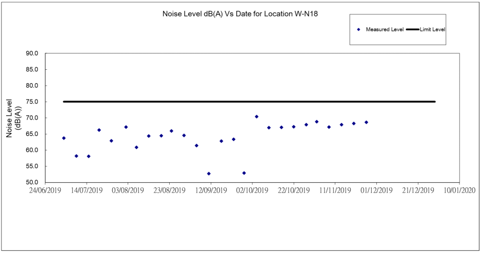 A.11 No exceedance of the Action and Limit Levels of 24-hour TSP, 1-hour TSP and construction noise monitoring were recorded during the reporting month.