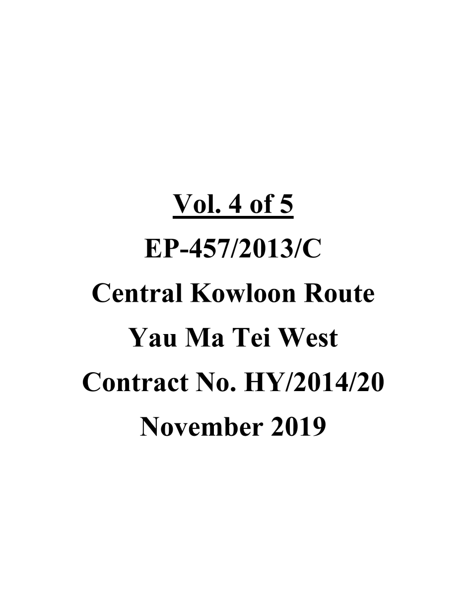1.2. The Central Kowloon Route – Design and Construction Environmental Impact Assessment Report (Register No.: AEIAR-171/2013) was approved with conditions by the Environmental Protection Department (EPD) on 11 July 2013. An Environmental Permit (EP 457/2013) was issued on 9 August 2013. Variations of EP (VEP) was subsequently applied for and the latest EP (EP-457/2013/C) was issued by EPD on 16 January 2017.