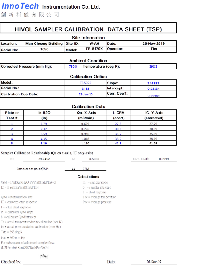 H. Calibration Certificate (Air Monitoring)