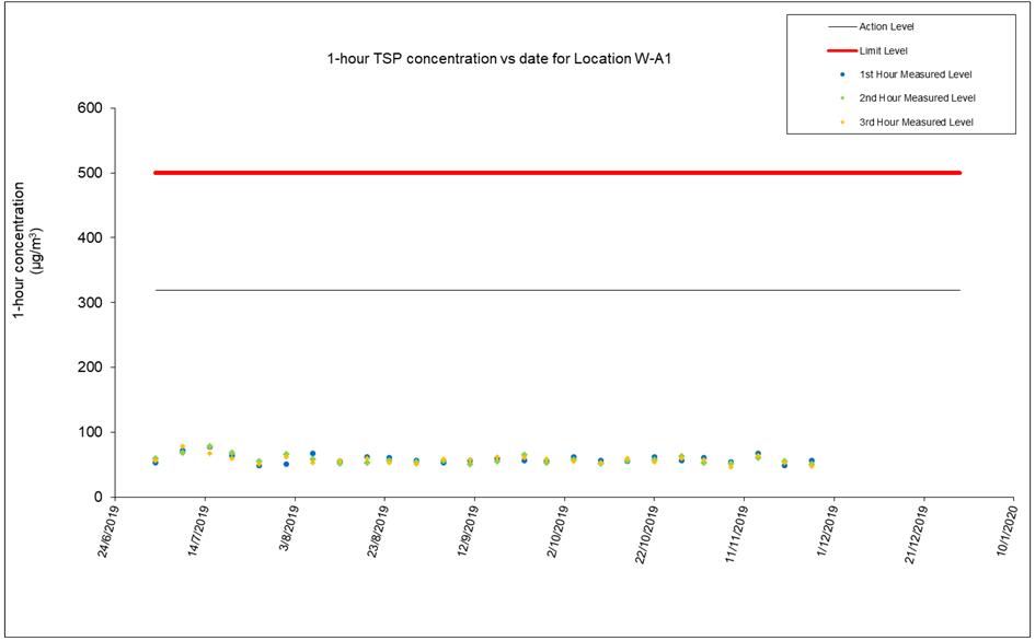 A.12 No exceedance of the Action and Limit Levels of 24-hour TSP and 1-hour TSP monitoring were recorded during the reporting period.