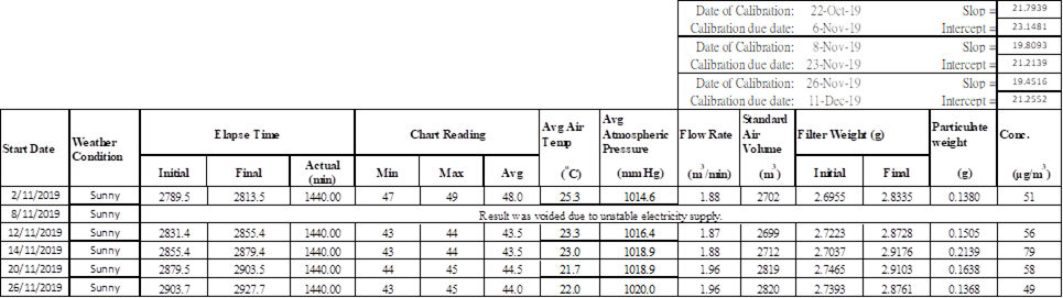 A.5 Scheduled monitoring for 1-hour TSP remained unaffected, only the schedule of 24-hour TSP was affected.