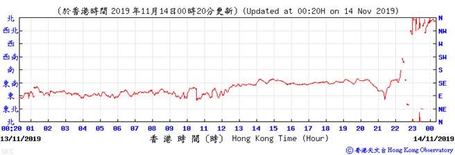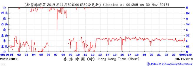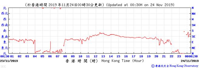 Wind direction data for 6, 7, 12, 13, 18, 19, 23, 24, 29, 30 November 2019