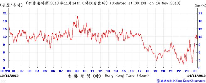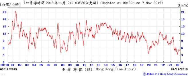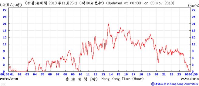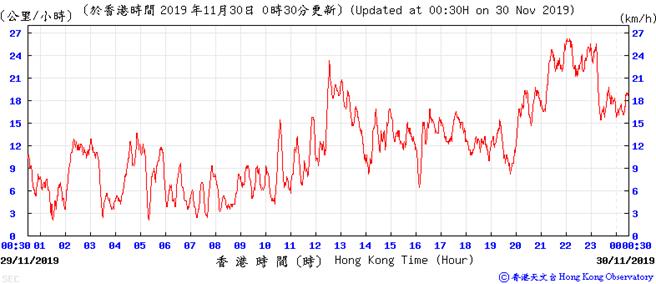 Wind speed data for 6, 7, 12, 13, 18, 19, 23, 24, 29, 30 November 2019
