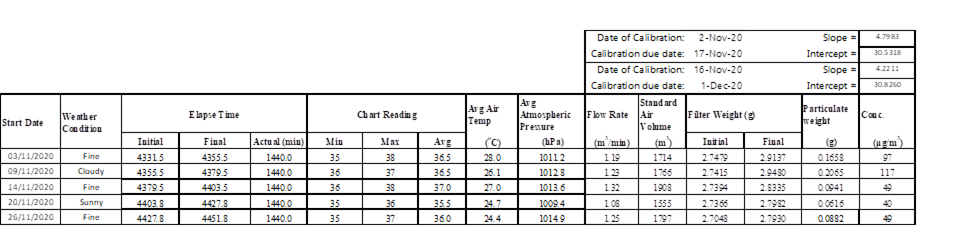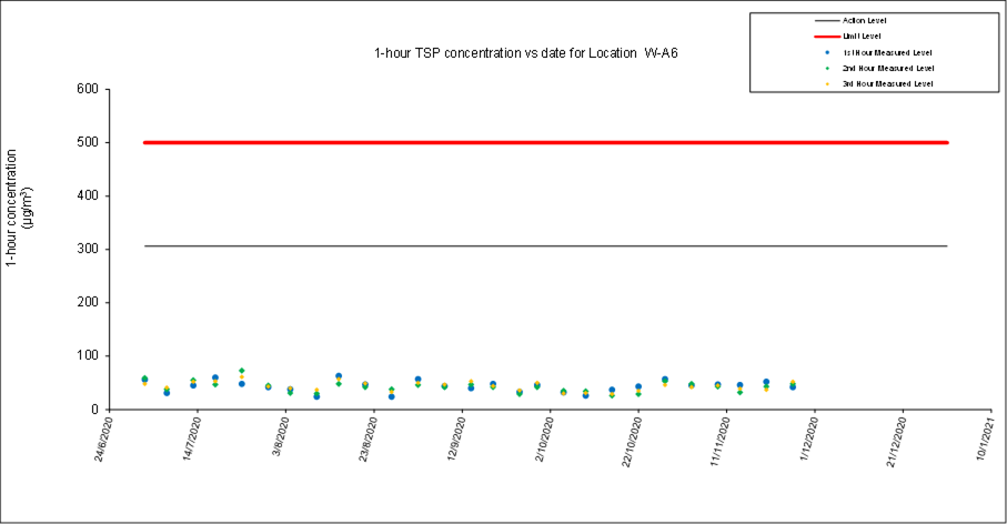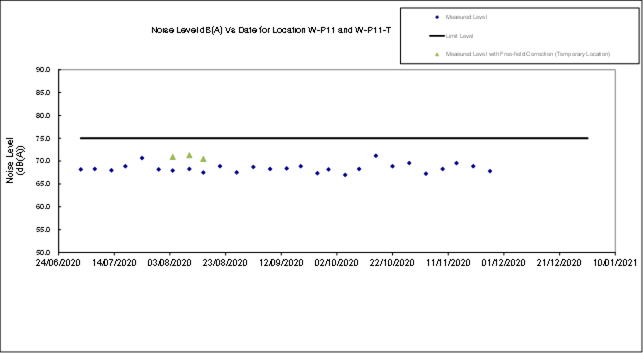 A.7 One Action Level of construction noise was triggered during the reporting period as there was one documented complaint received on 14 November 2020 related to construction noise and dust at Prosperous Garden. No exceedance of Limit Level of construction noise was recorded in the reporting month. No exceedance of the Action Level and Limit Levels of 24-hour TSP and 1-hour TSP was recorded during the reporting month.