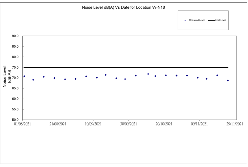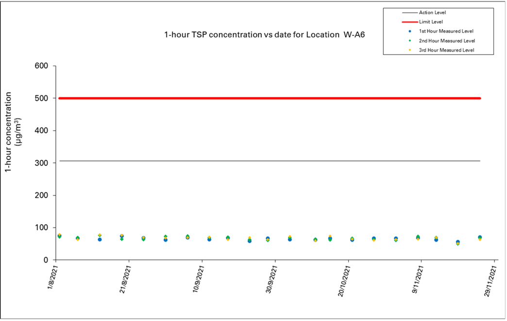 A.7 No exceedance of the Action and Limit Levels of 1-hour TSP, 24-hour TSP and construction noise monitoring was recorded during the reporting month.