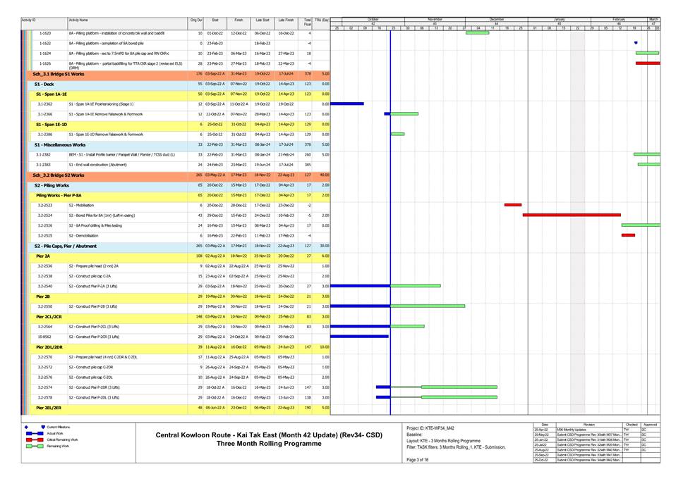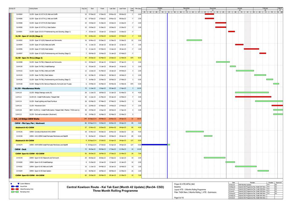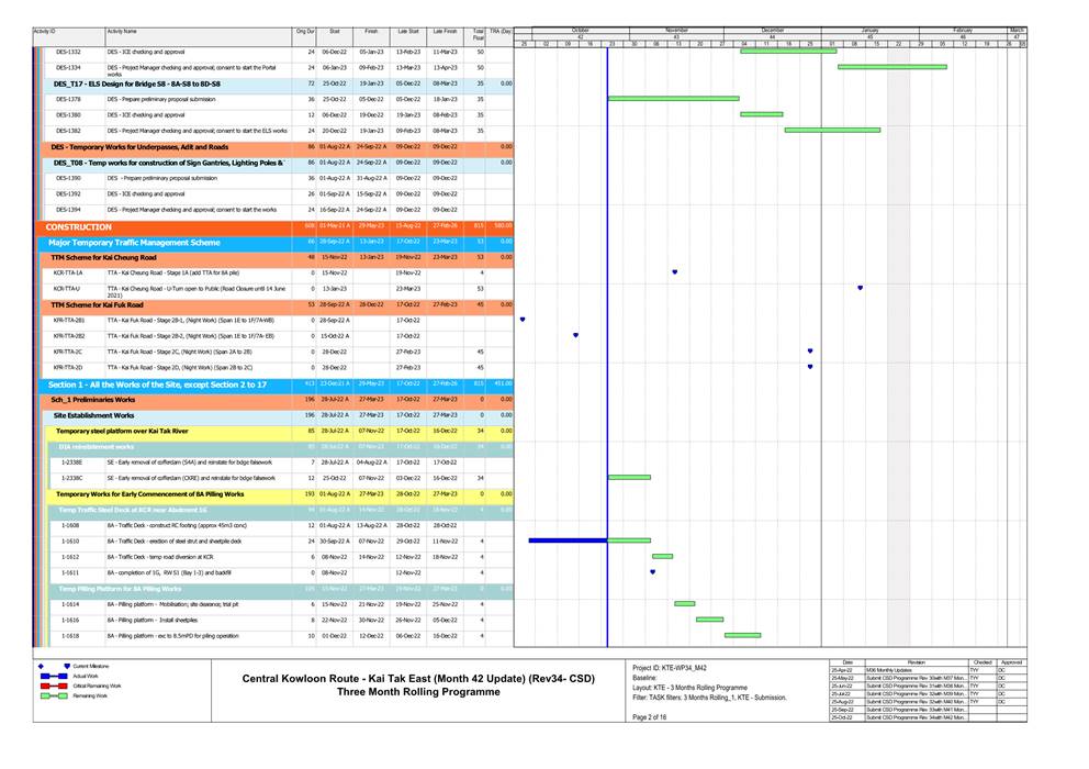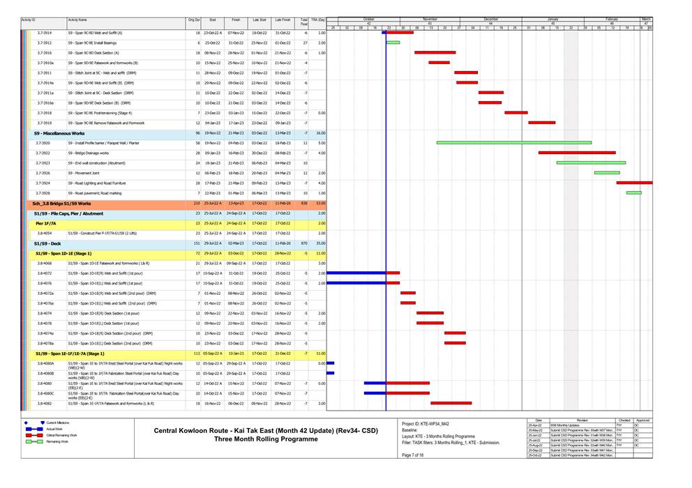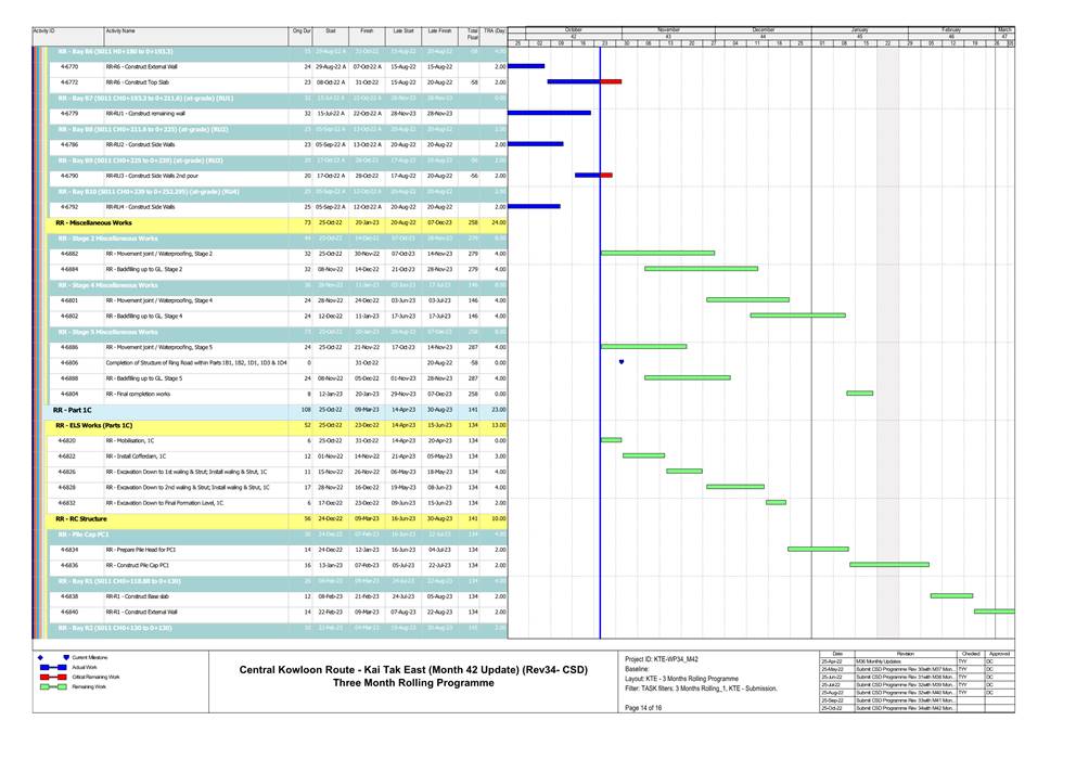 1.5. A summary of major construction activities provided by the Contractor in this reporting period is shown in Table 1.1. The construction programme is presented in Appendix B.
