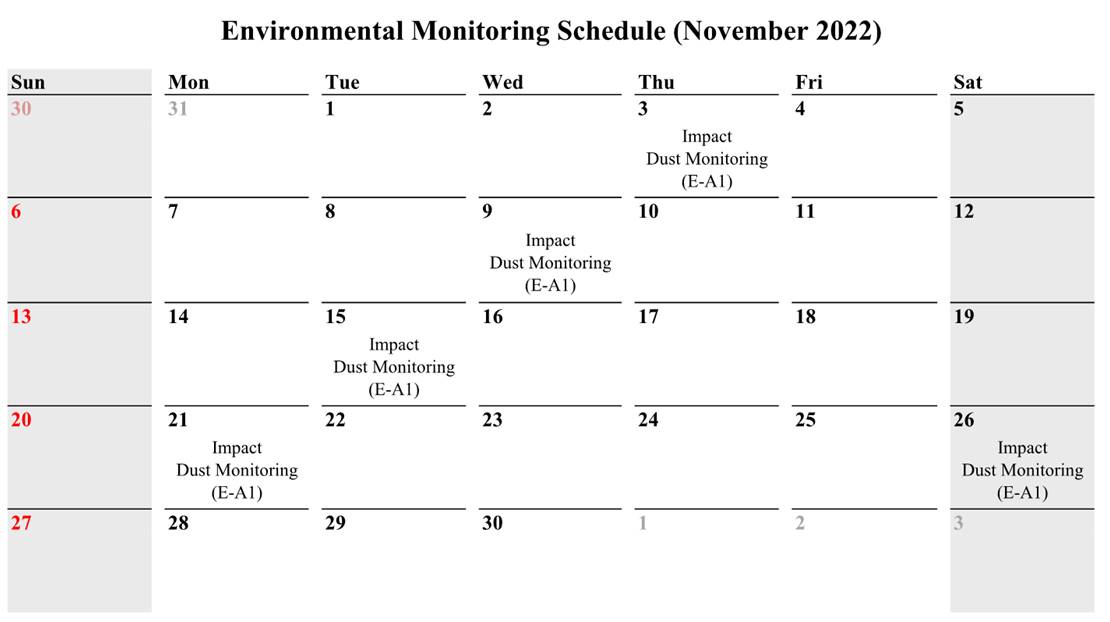 6.2 Site audits were conducted on 1, 8, 15, 22 & 29 November 2022 in the reporting month. Joint site inspection with the representative of IEC was conducted on 15 November 2022. No non-compliance was observed during the site audit.