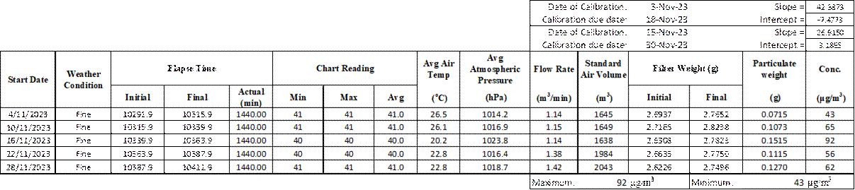 A.5 Joint weekly site inspections were conducted by representatives of the Environmental Team (ET), Contractor and Engineer on 2, 9, 16, 23 and 30 November 2023. One joint site inspection with IEC was also undertaken on 23 November 2023. Details of the audit findings and implementation status are presented in Section 5.
