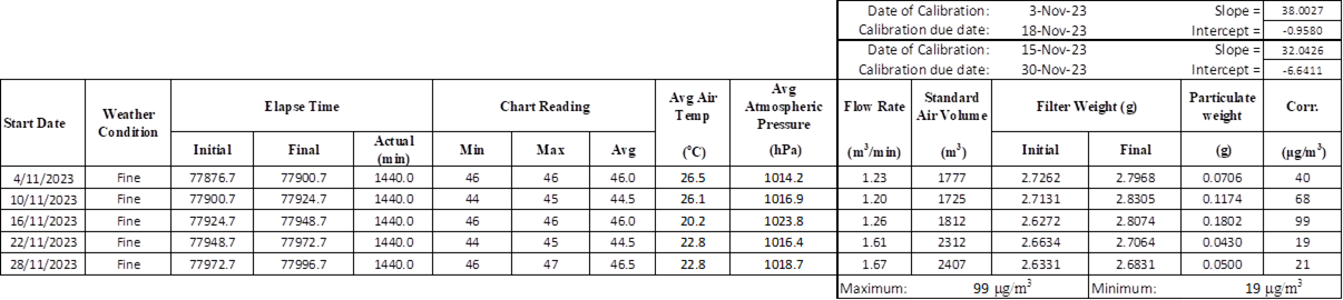 2. No Action/Limit Level exceedance was recorded for all 1-hour TSP and 24-hour TSP monitoring in the reporting month.