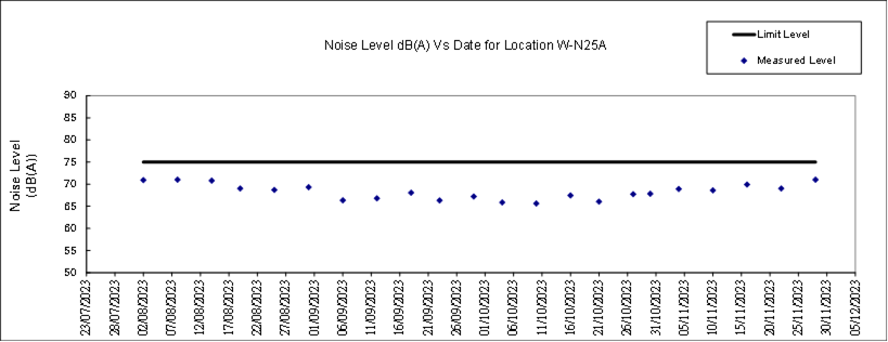 A.7 No exceedance of the Action and Limit levels of 1 hour TSP, 24 hours TSP and construction noise monitoring was recorded during the reporting month.