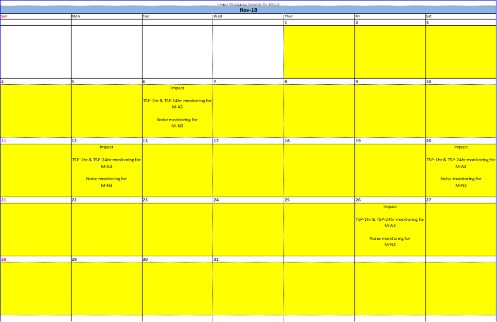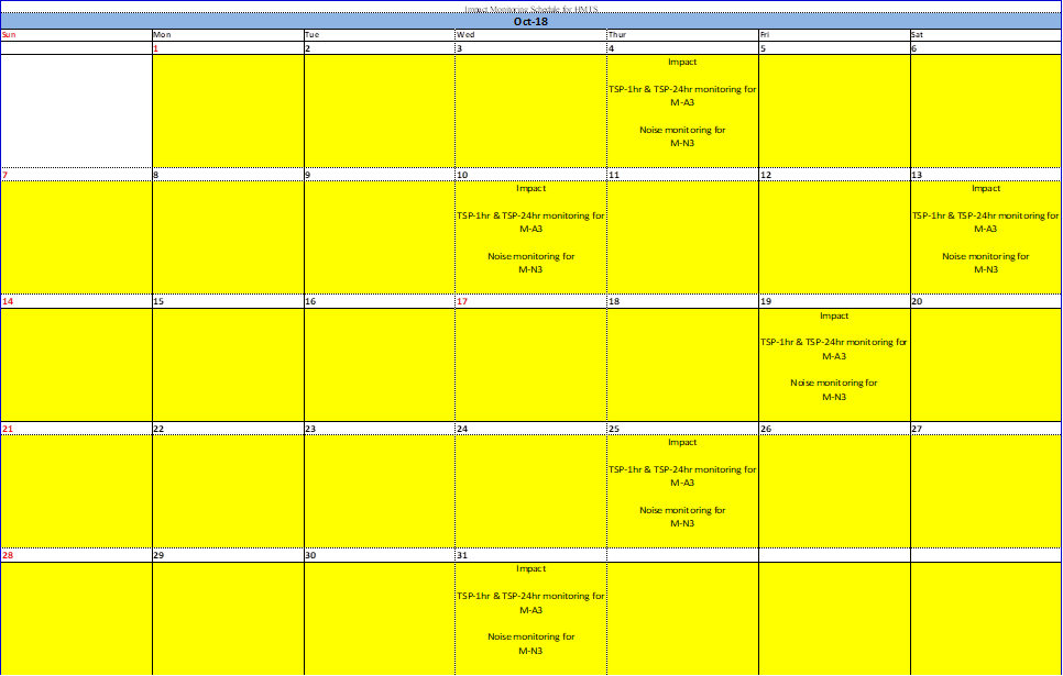 A.7 Joint weekly site inspections were conducted by representatives of the Contractor, Engineer and Contractor’s ET on 3,10,18 and 24 October 2018. The representative of IEC joined the site inspection on 10 October, 2018. Details of the audit findings and implementation status are presented in Section 5.