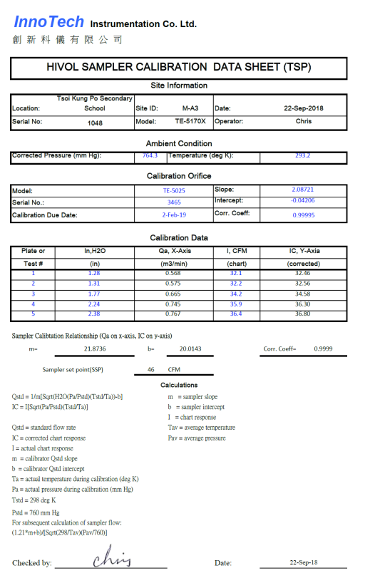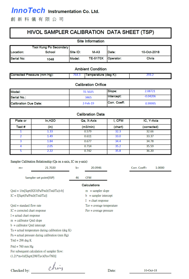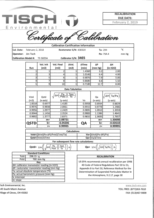 H. Calibration Certificate (Air Monitoring)