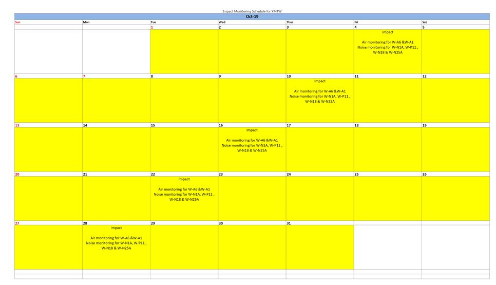 A.4 No construction work was conducted during time period other than normal working hours during this reporting month.