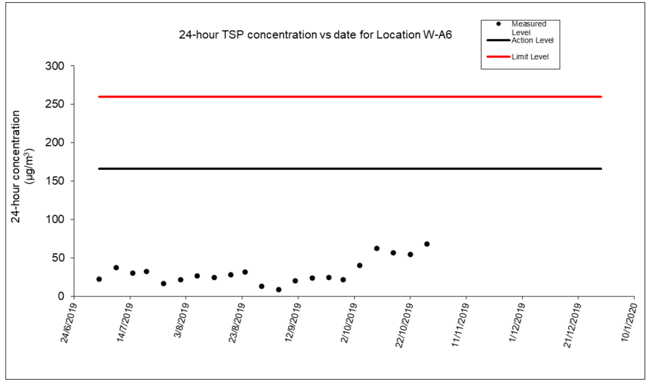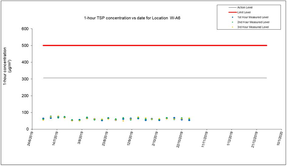 A.10 No exceedance of the Action and Limit Levels of 24-hour TSP and 1-hour TSP monitoring were recorded during the reporting period.