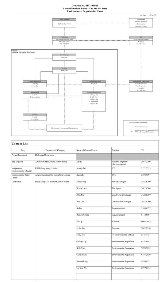 6.5 The Event and Action Plans for air quality and construction noise could be referred to Appendices D and E of the EM&A report in Contract No. HY/2014/20 respectively.