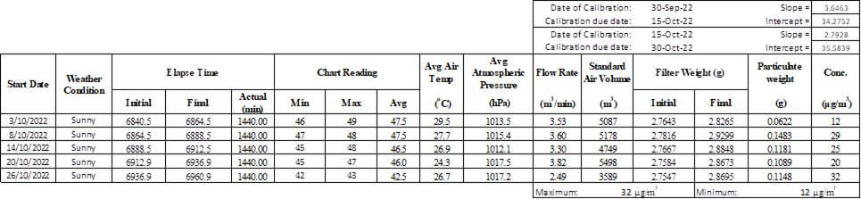 2.2 No Action/Limit Level exceedance was recorded for all 1-hour TSP and 24-hour TSP monitoring in the reporting month.