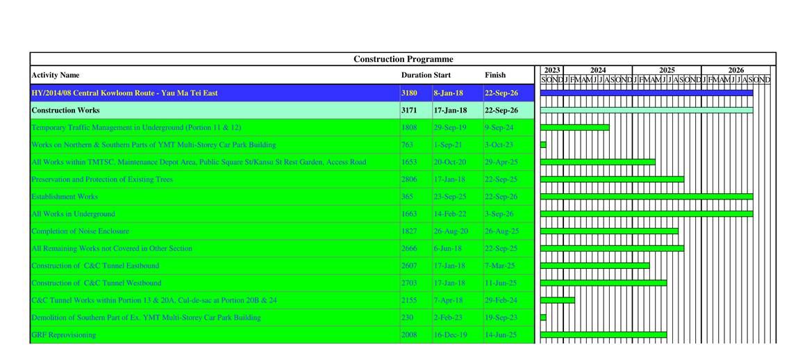 1.3. The construction of the CKR had been divided into different sections. This Contract No. HY/2014/08 – Section of Yau Ma Tei East (YMTE) covers part of the construction activities located at Yau Ma Tei under the EP and FEP which includes: