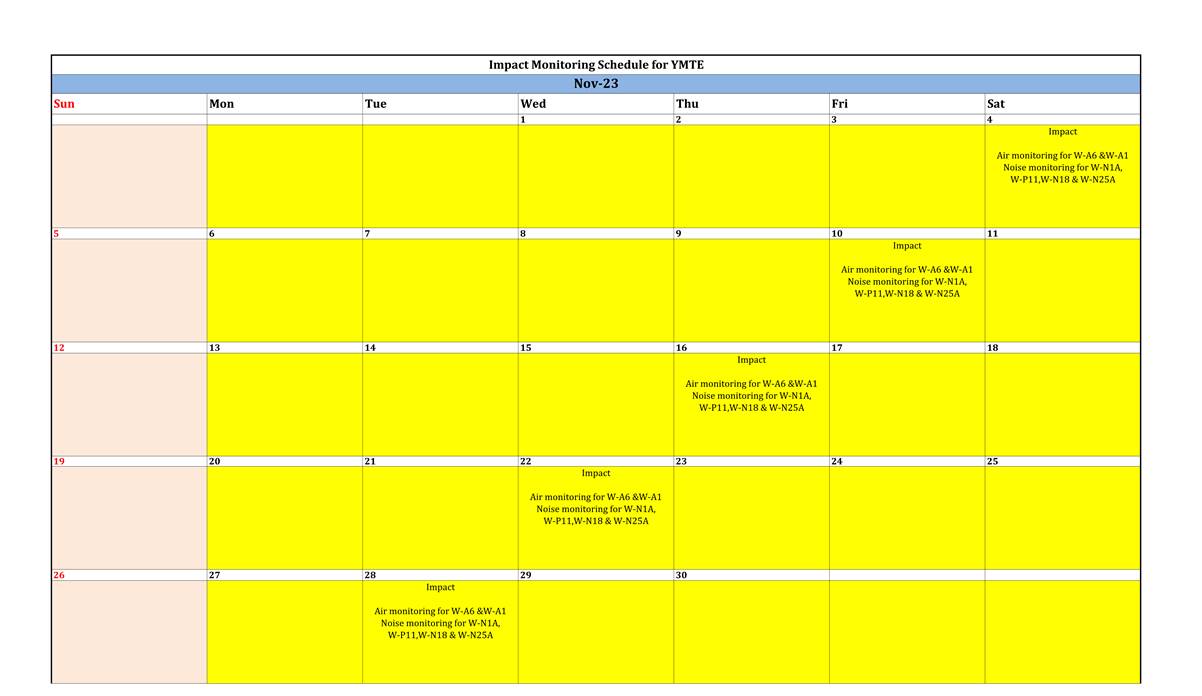 A.7 One Action Level of construction noise was triggered during the reporting month as documented complaints were received. No exceedance of Limit Level of construction noise was recorded in the reporting month. No exceedance of the Action and Limit Level of 24-hour TSP and 1-hour TSP was recorded in the reporting month.