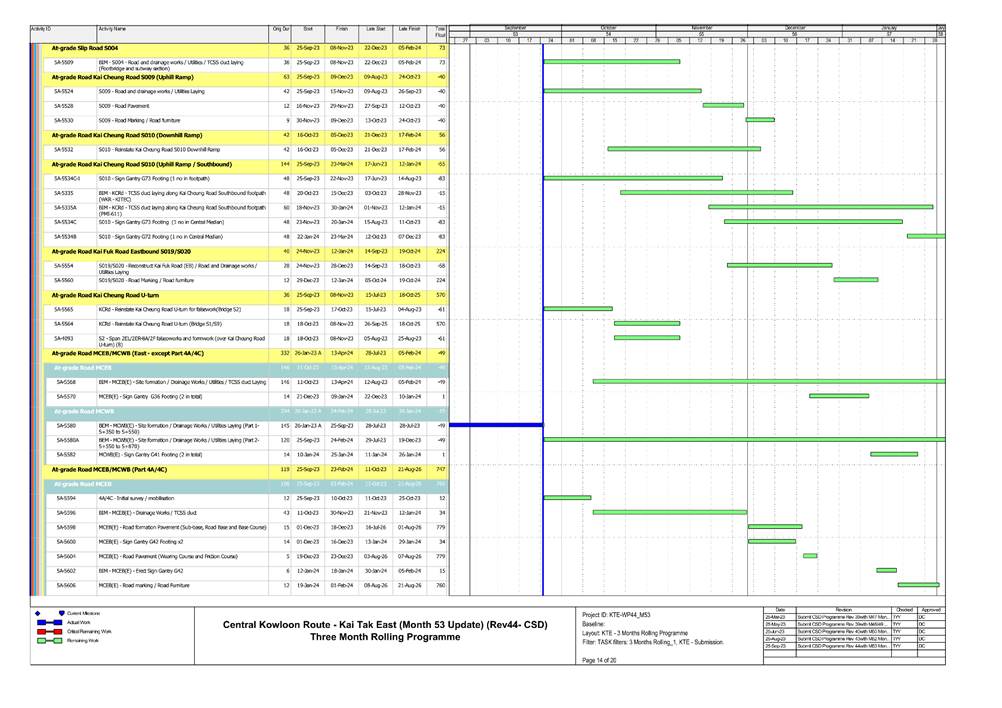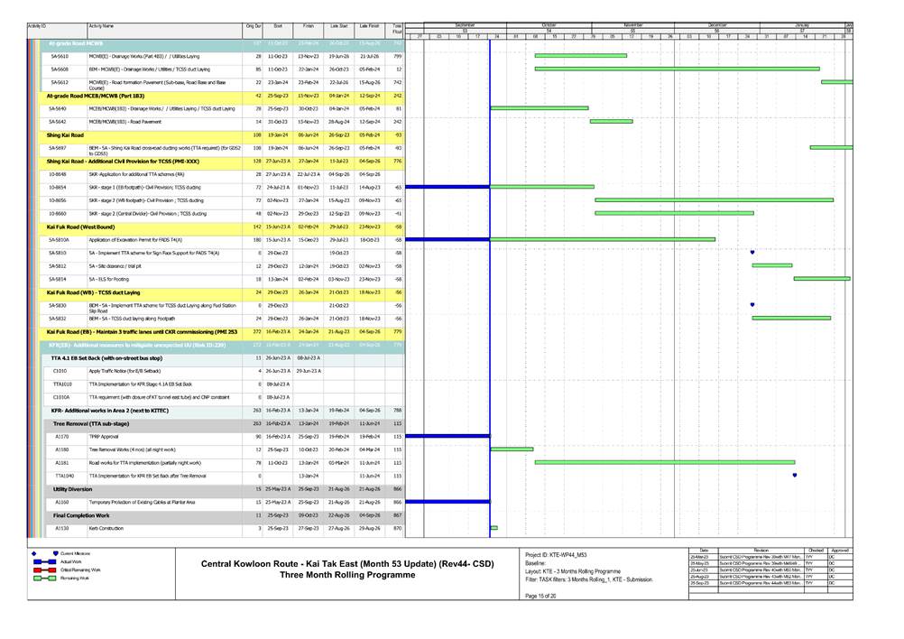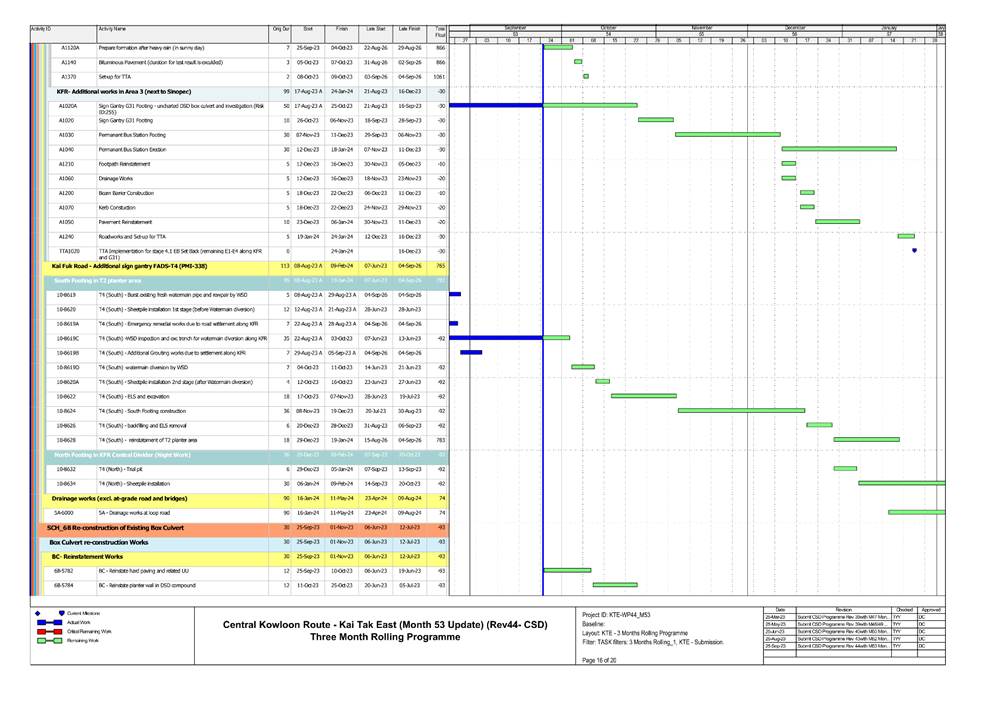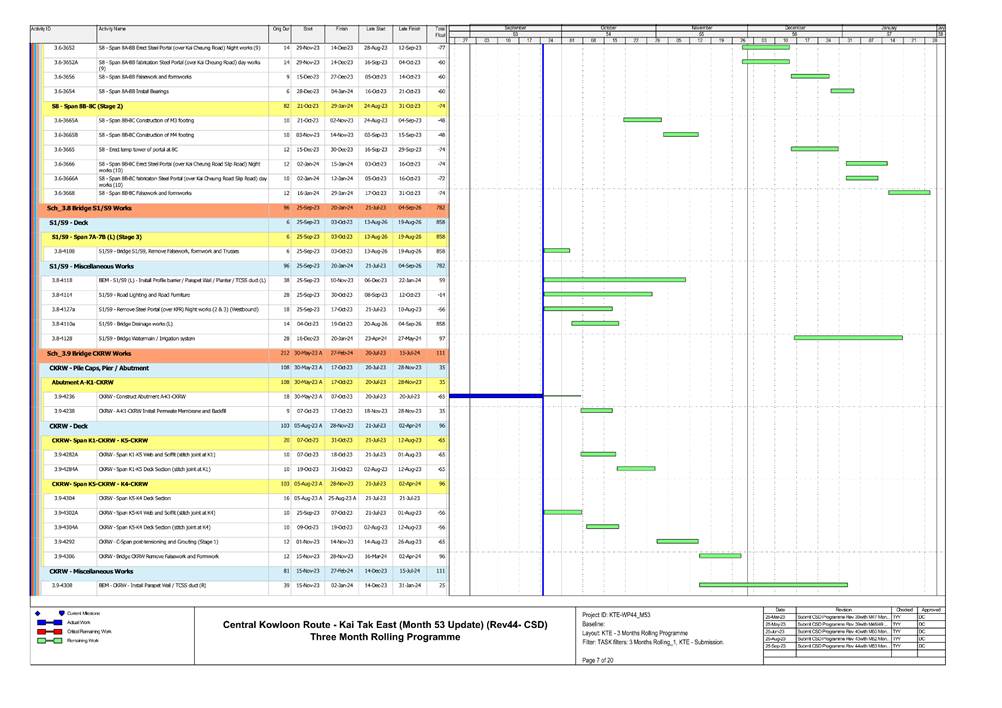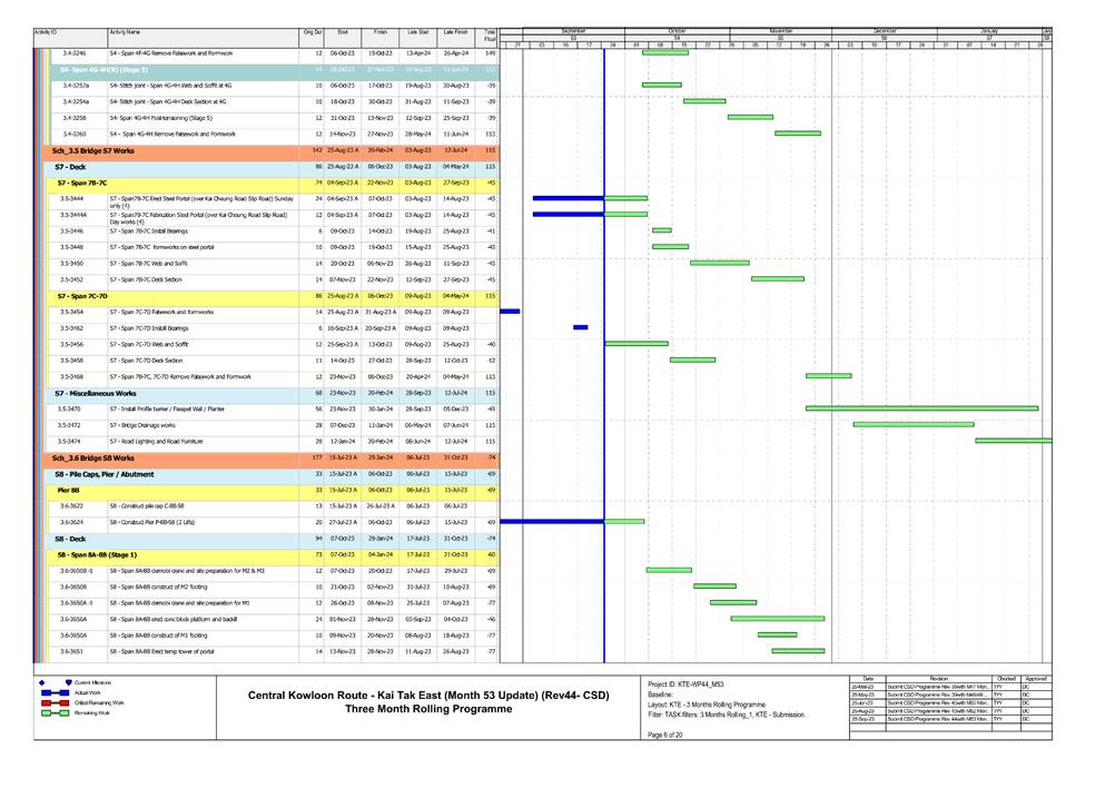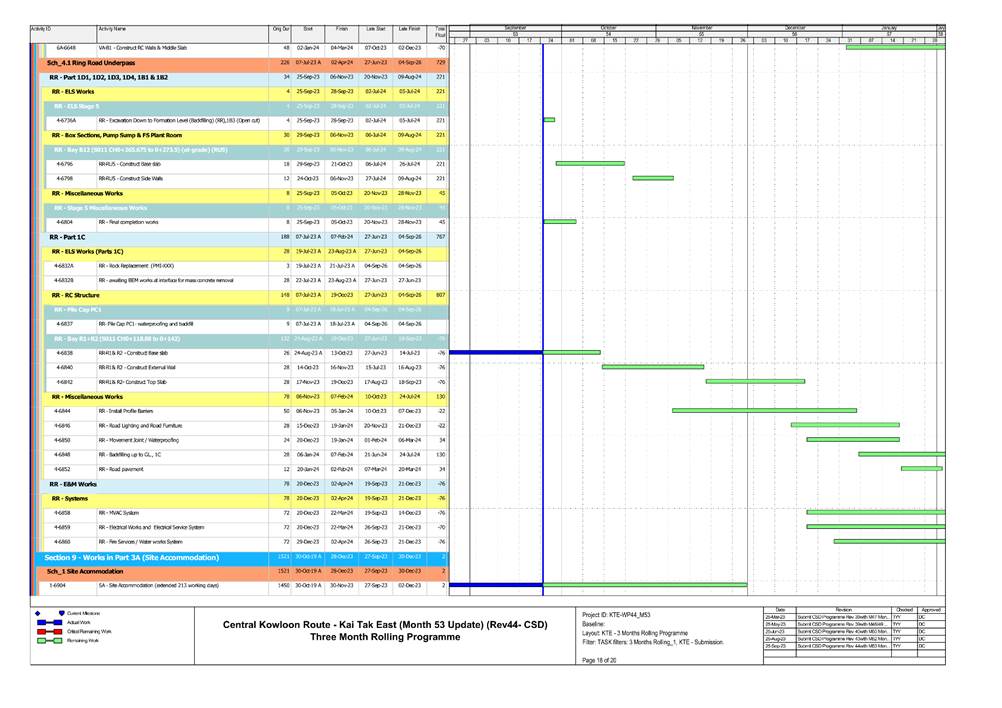 1.5. A summary of major construction activities provided by the Contractor in this reporting period is shown in Table 1.1. The construction programme is presented in Appendix B.