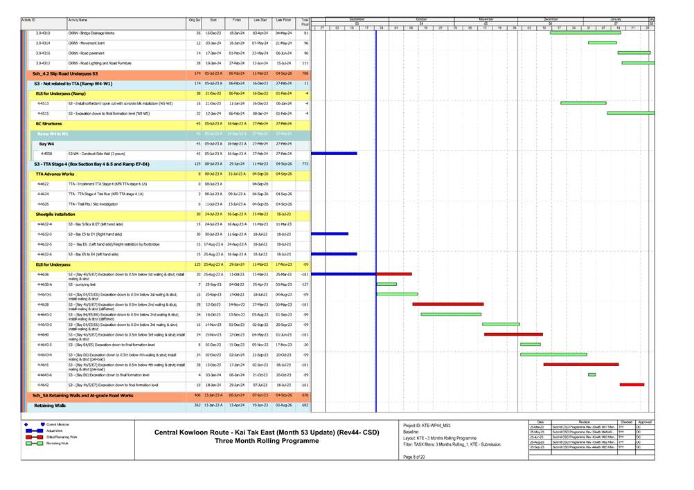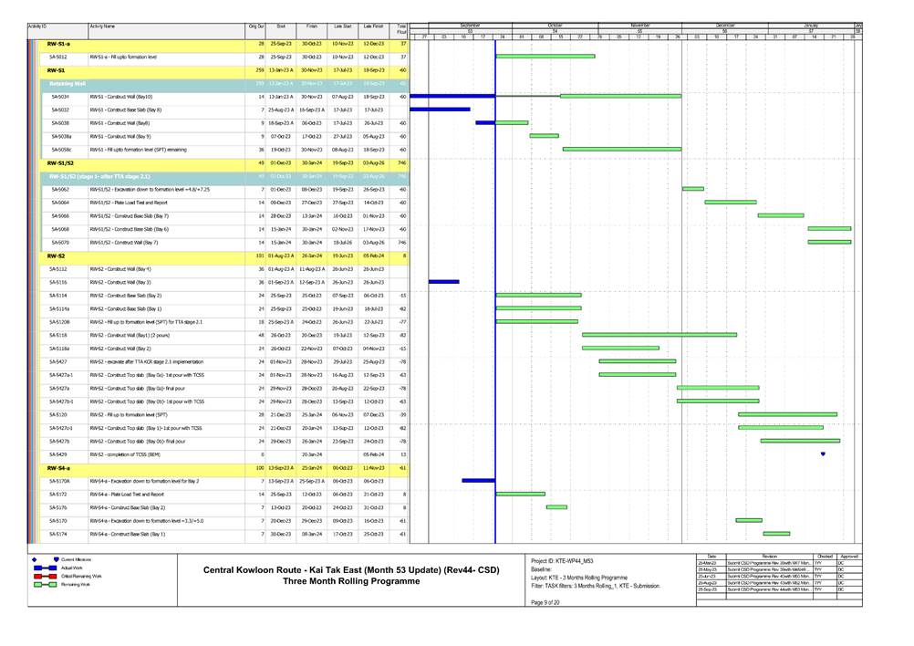 · S1, S3, S4, S9, CKRE, CKRW Bridge Construction · Retaining Wall Construction at U-Turn & Portion 2B · Excavation Work at Portion 4A/4C |