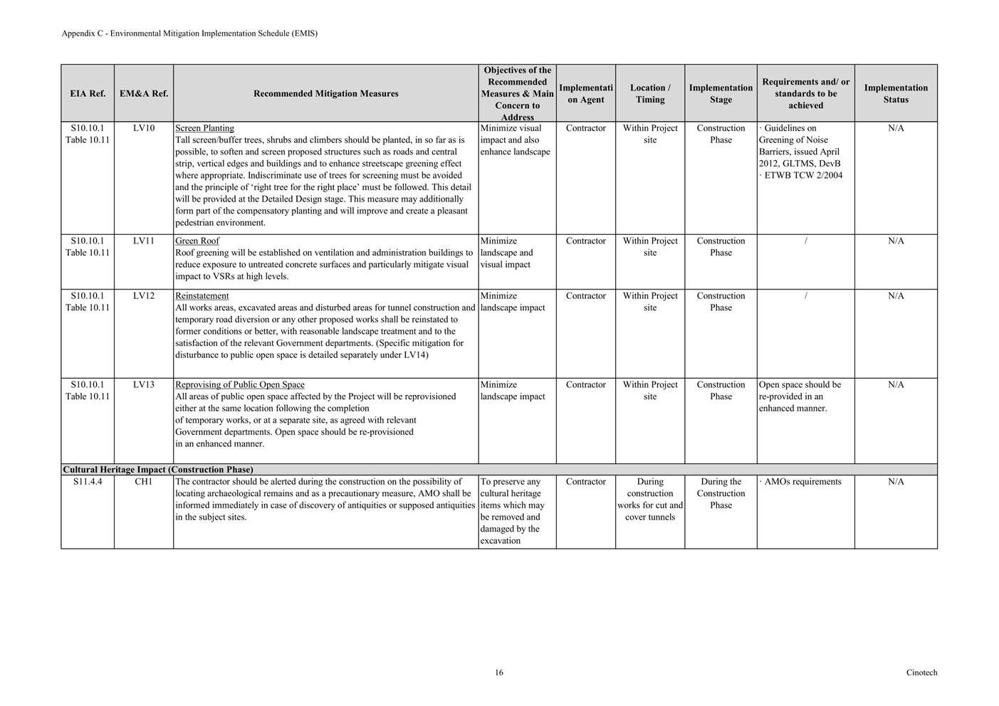 F. Environmental Mitigation Implementation Schedule (EMIS)