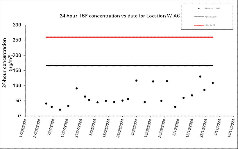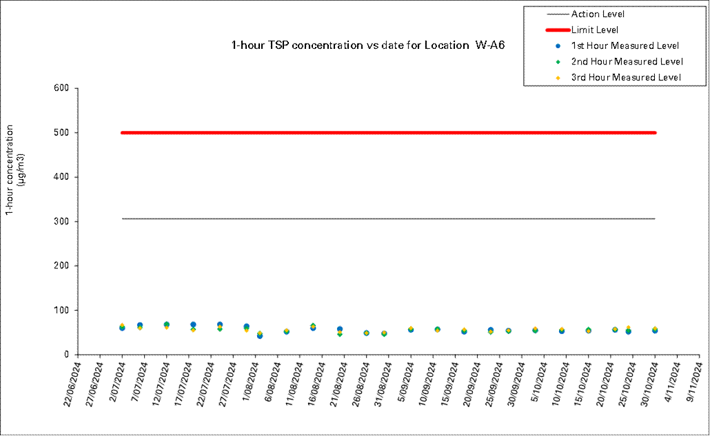A.7          No Action Level of construction noise was triggered during the reporting month. No exceedance of Limit Level of construction noise was recorded in the reporting month. No exceedance of the Action and Limit Level of 24-hour TSP and 1-hour TSP was recorded in the reporting month.