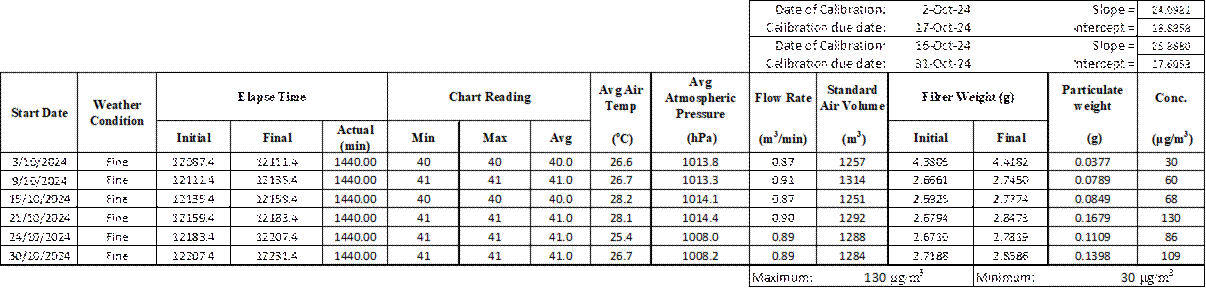 8.1        This is the 49th Monthly EM&A Report which presents the EM&A works undertaken in Yau Ma Tei West Area during the reporting month from 1st October 2024 – 31st October 2024 in accordance with the EM&A Manual and the requirements under the EP.