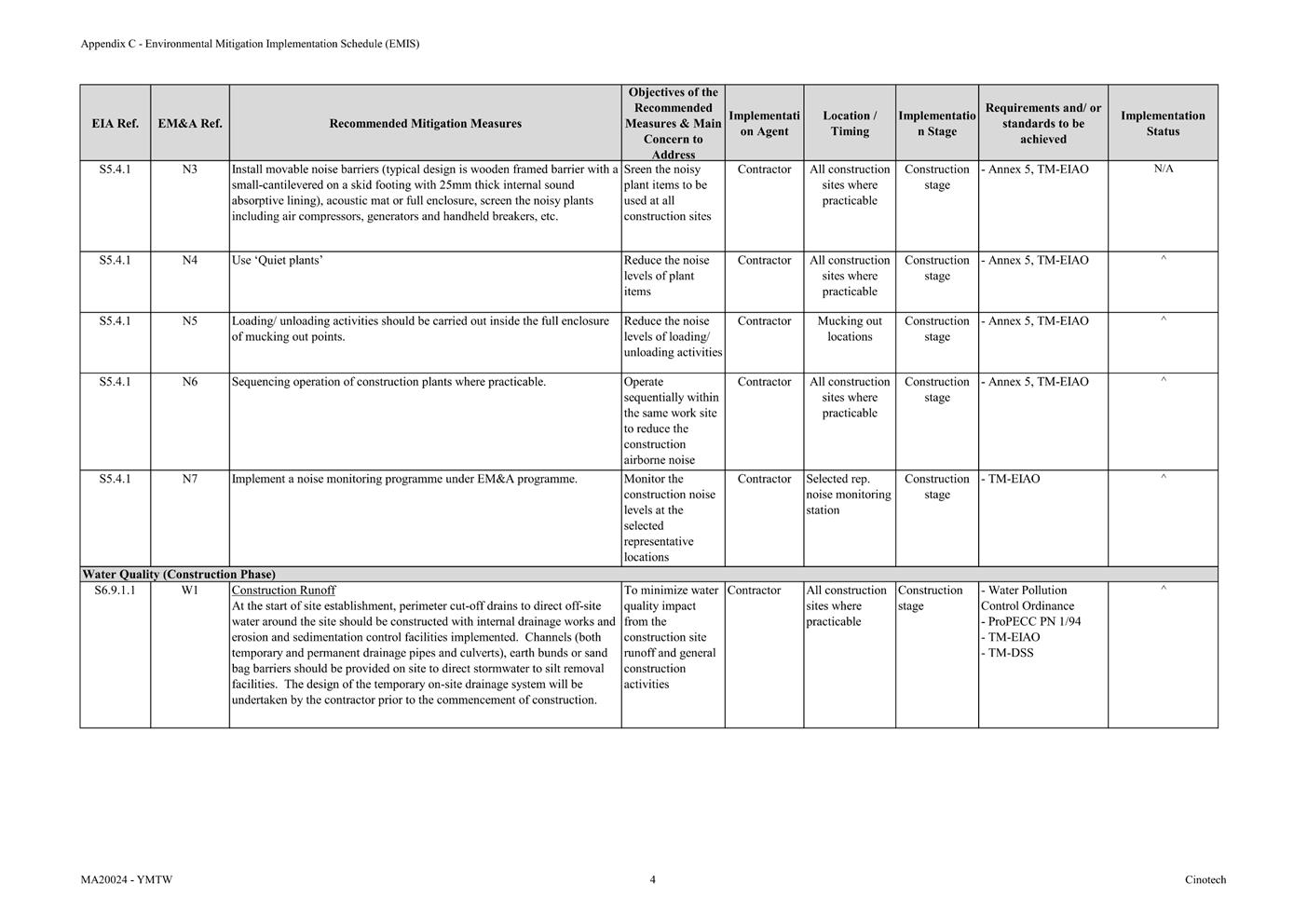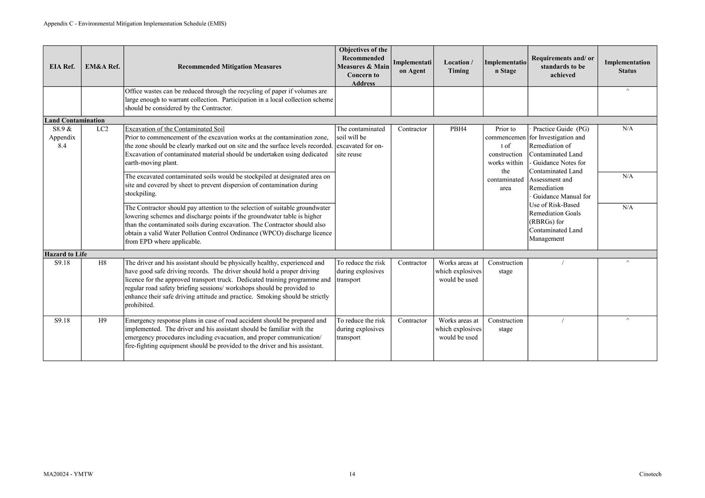 F.     Environmental Mitigation Implementation Schedule (EMIS)