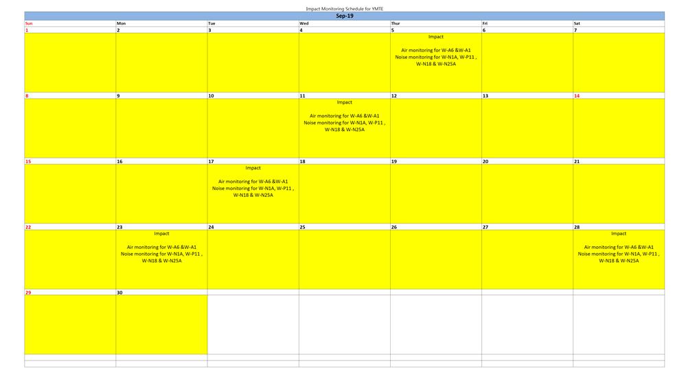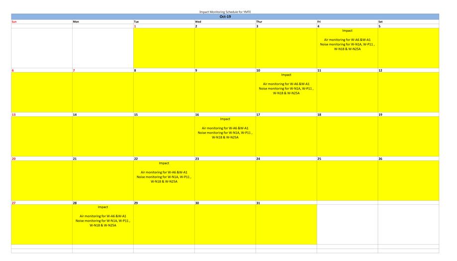 Monitoring Schedule of the Coming Month