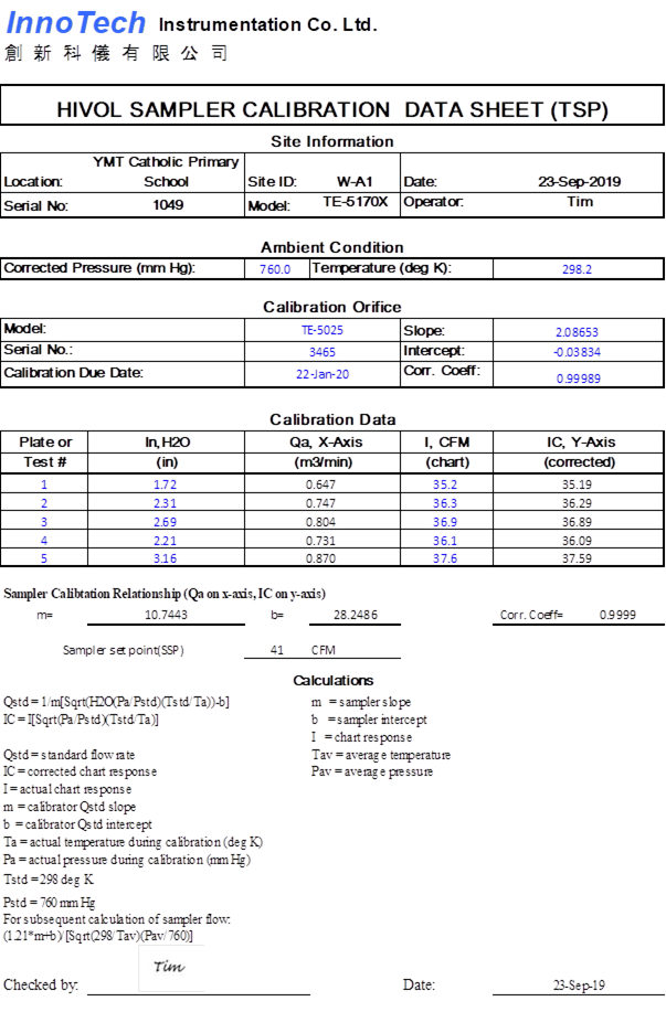 H. Calibration Certificate (Air Monitoring)