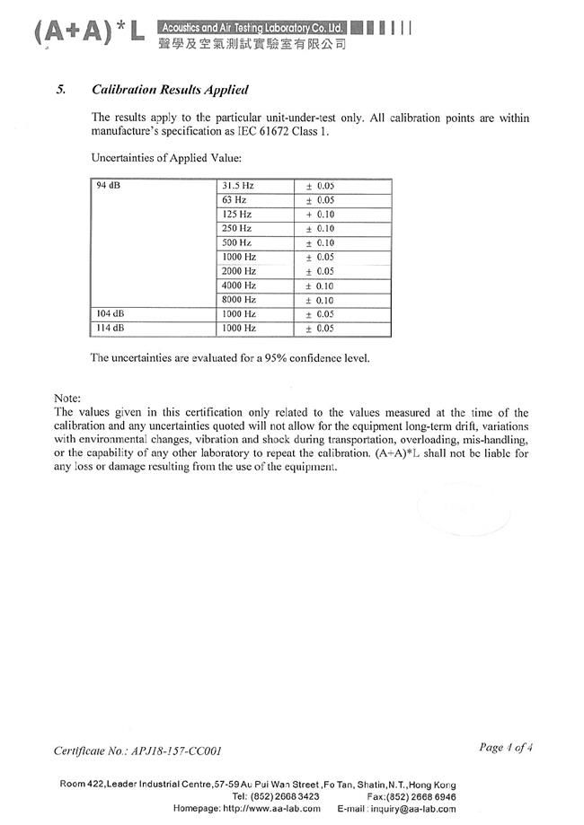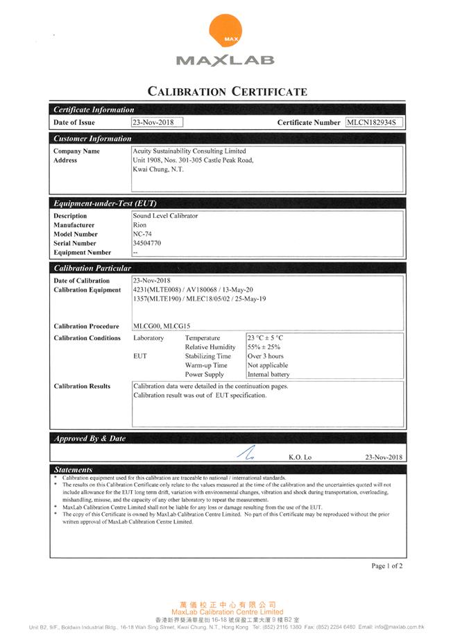 I. Calibration Certificate (Noise)