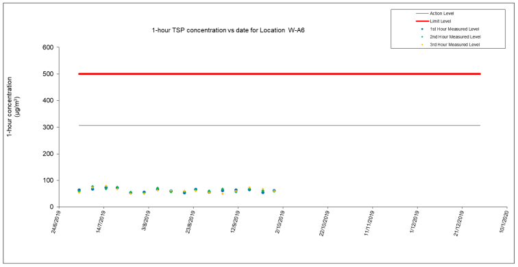 A.9 No exceedance of the Action and Limit Levels of 24-hour TSP, 1-hour TSP and construction noise monitoring were recorded during the reporting month.