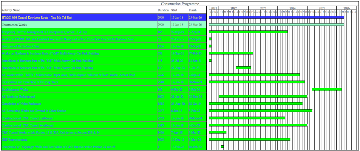v. Construction of civil provisions and coordination with the contractor of Central Kowloon Route - Tunnel Electrical & Mechanical contract