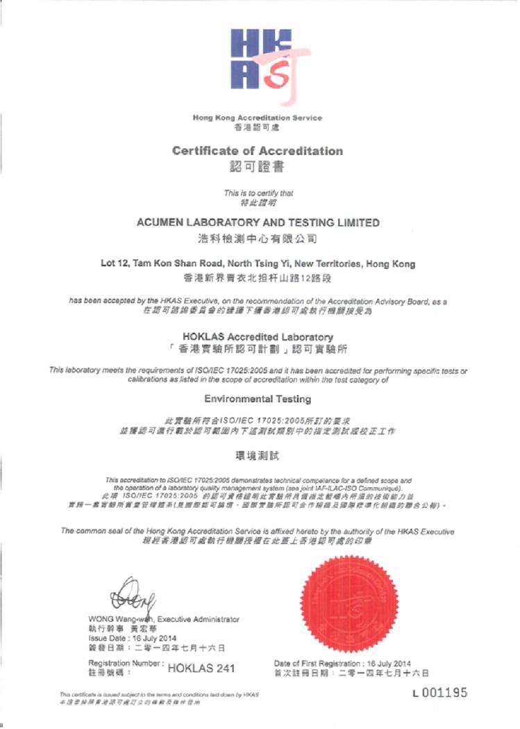 J. The Certification of Laboratory with HOKLAS Accredited Analytical Tests