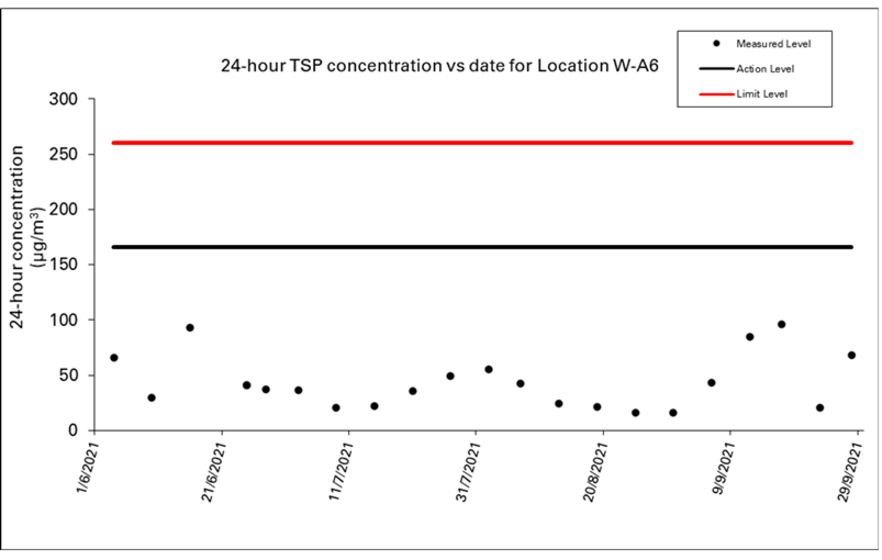 A.7 No exceedance of the Action and Limit Levels of 1-hour TSP, 24-hour TSP and construction noise monitoring was recorded during the reporting month.
