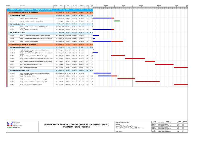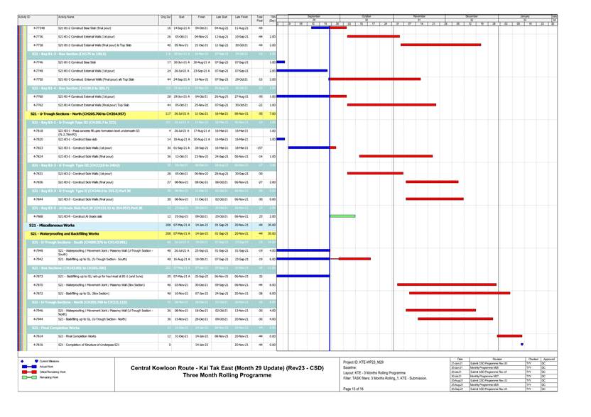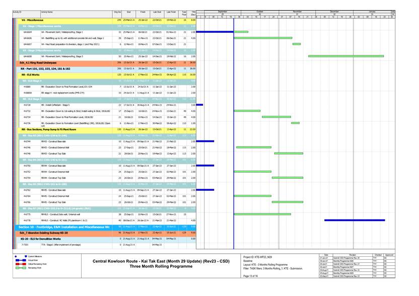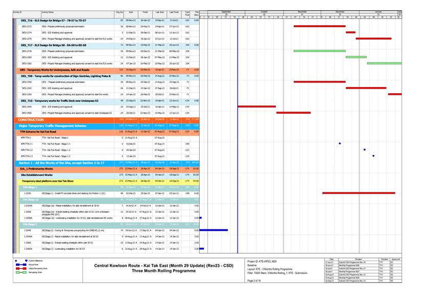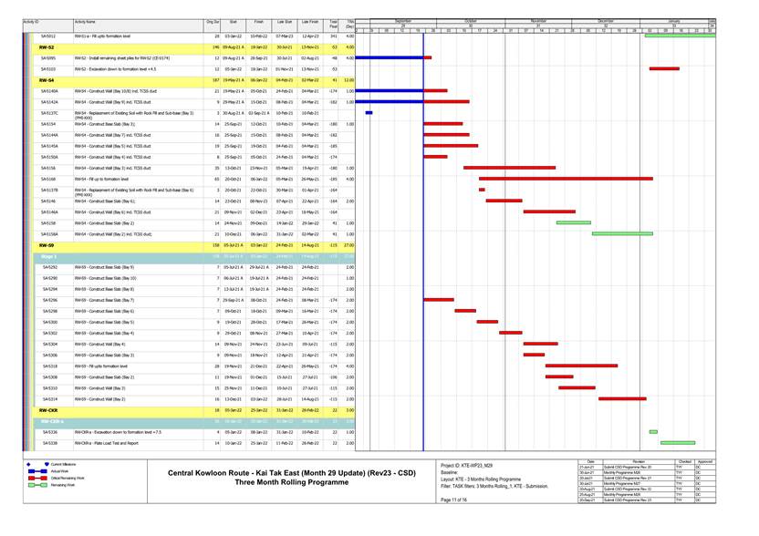 1.4. A summary of major construction activities provided by the Contractor in this reporting period is shown in Table 1.1. The construction programme is presented in Appendix B.