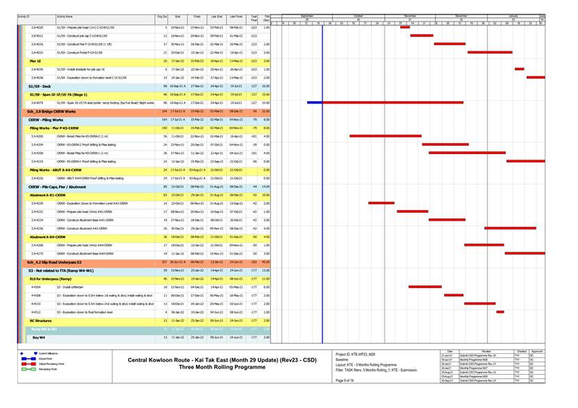· Bored Pile at Temporary Platform & Kai Cheung U Turn. · Pile Cap Construction at Portion 1A, Kai Cheung Loop Road & Portion 2B · RC structure for Adit at Area Part 1B. · RC structure for Underpass S3 & S21 at Area Part 3A · Construction of Temporary Platform at Kai Tak Nallah · Retaining Wall Construction at Portion 2B · Sheet piling Work at Area Part 1A & 3B · Central Divider Removal at Kai Fuk Road. |