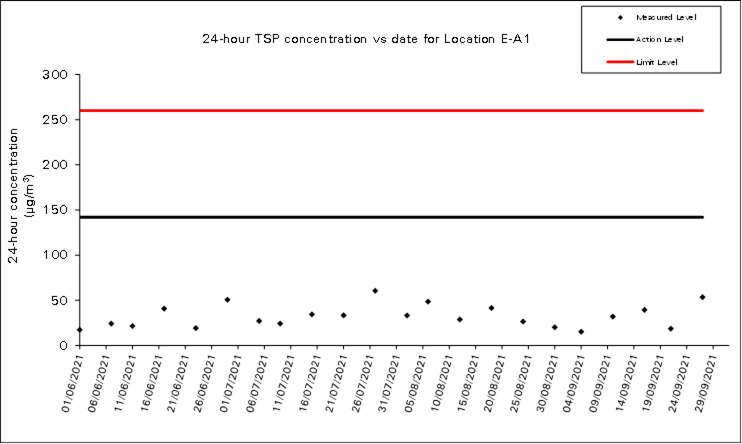 A.7 No exceedance of the Action and Limit Levels of 24-hour TSP and 1-hour TSP monitoring were recorded during the reporting month.