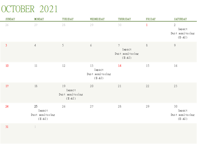 2.3 Site audits were carried out on a weekly basis to monitor and audit the timely implementation of air quality mitigation measures within the site boundaries of this Project. The summary of site audits are shown in Table 6.1 of this report.