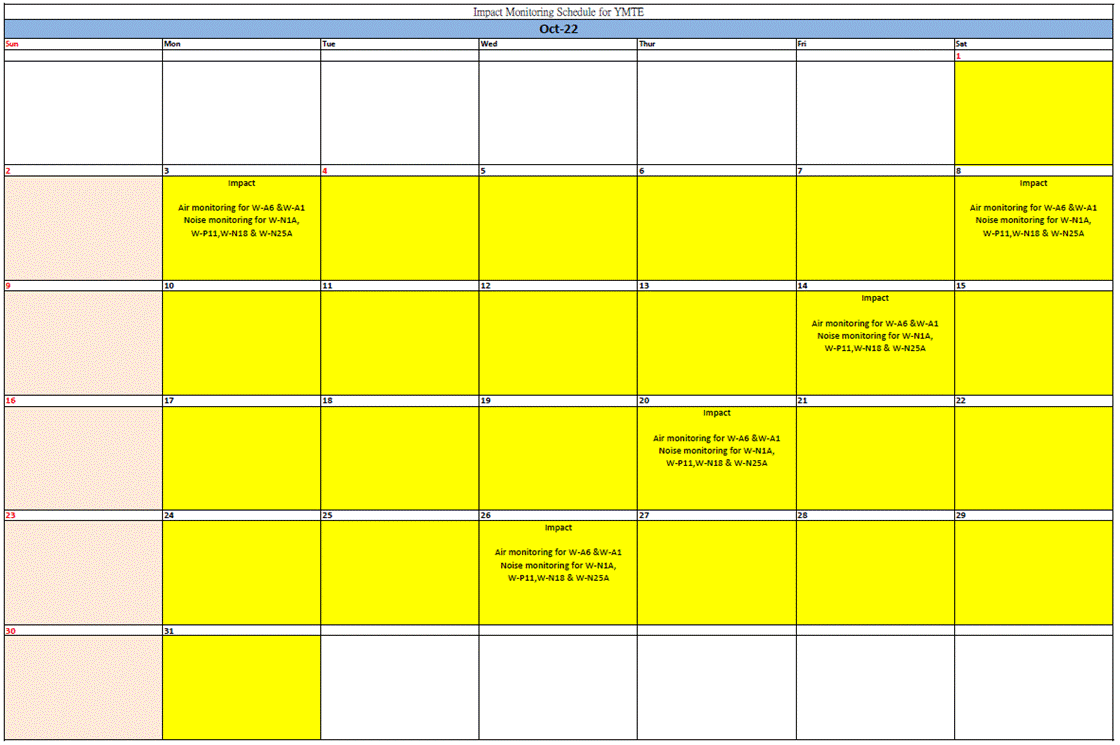 A.5 Joint weekly site inspections were conducted by representatives of Environmental Team (ET), Contractor and Engineer on 1, 8, 16, 22 and 29 September 2022. One joint site inspection with IEC was also undertaken on 16 September 2022. Details of the audit findings and implementation status are presented in Section 5.