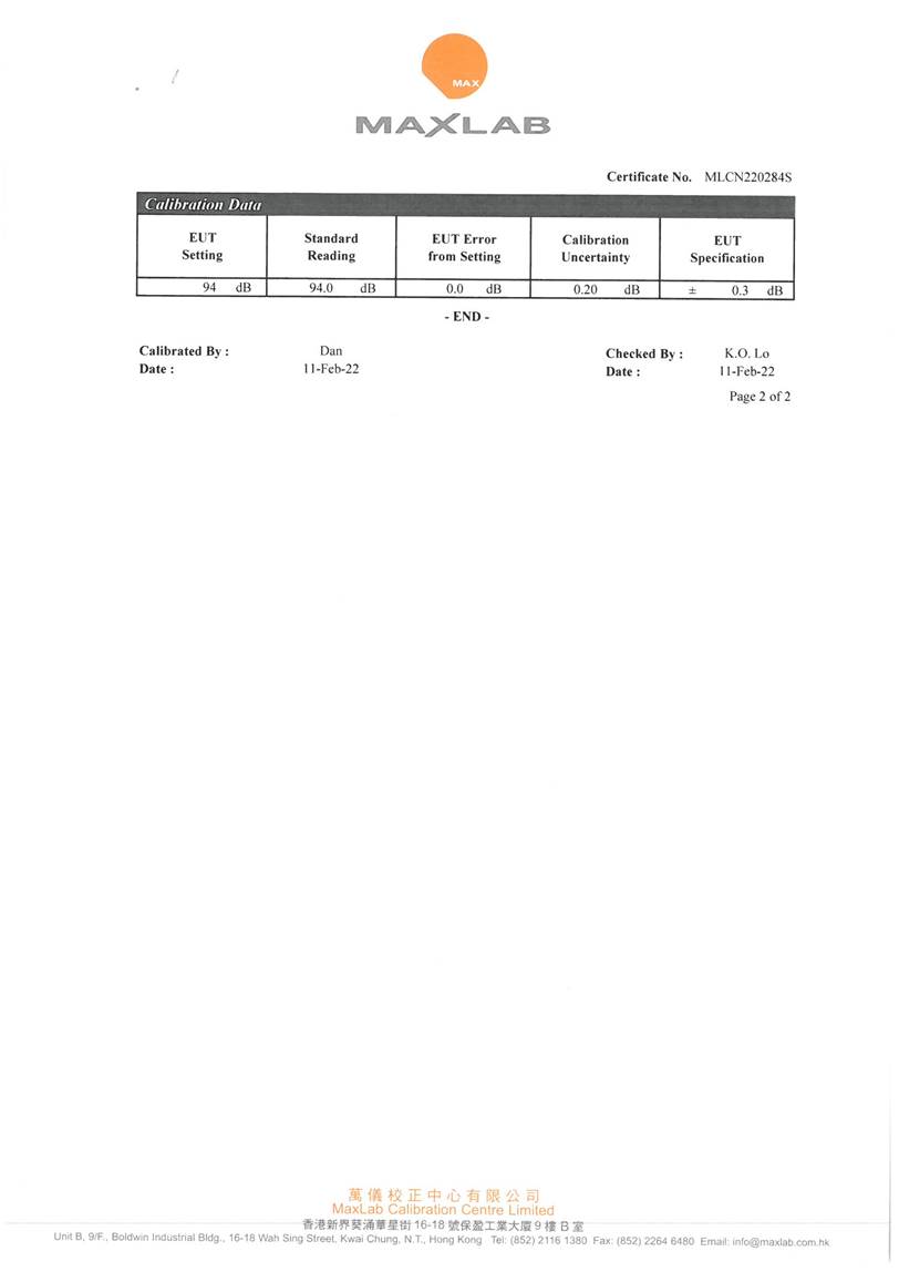 I. Calibration Certificate (Noise)