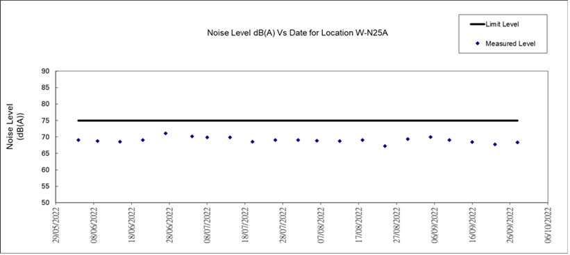 8.3 No Action/Limit Level exceedance was recorded for all noise monitoring in the reporting month.