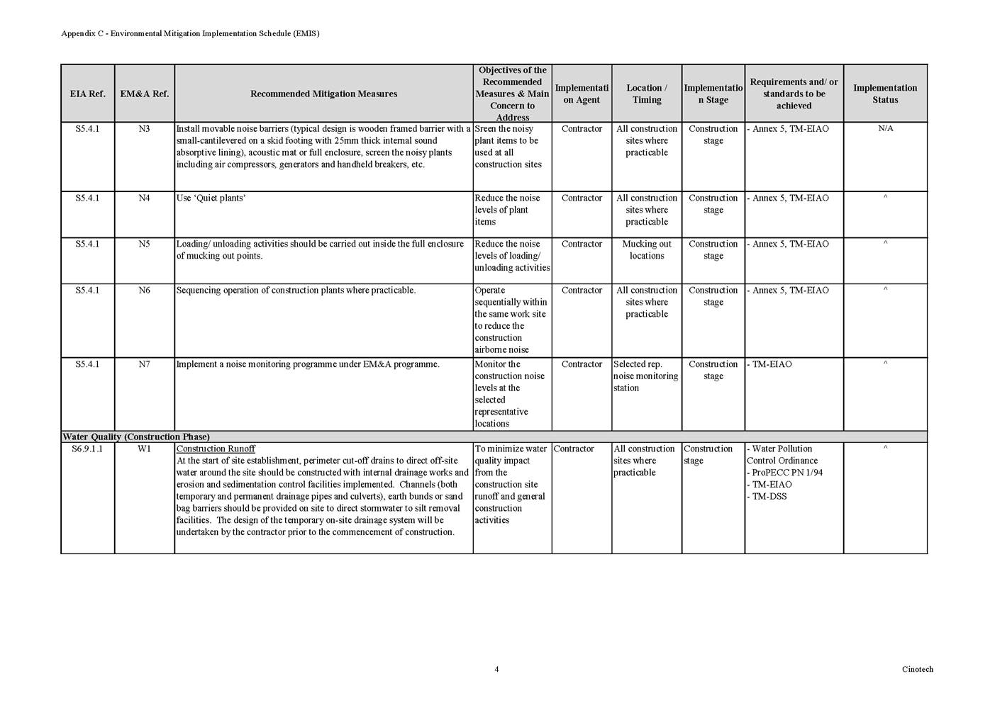 6.3 According to Environmental Permit, the approved EIA Report (Register No.: AEIAR-171/2013), and the EM&A Manual of the Project, the mitigation measures detailed in the documents are recommended to be implemented during the construction phase. An Environmental Mitigation Implementation Schedule (EMIS) is provided in Appendix C.