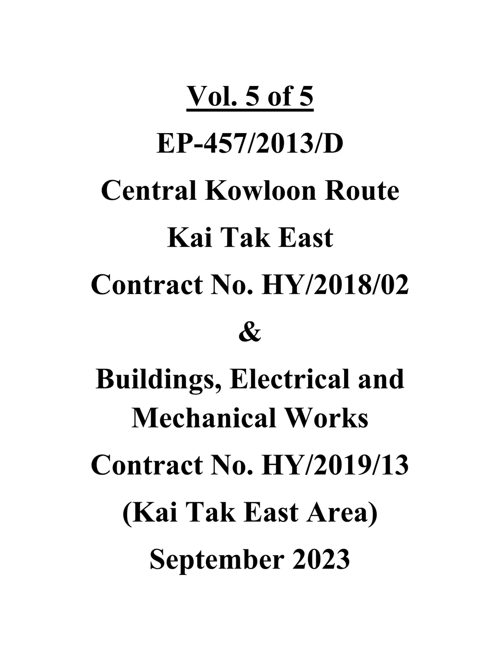 1.2. The Central Kowloon Route – Design and Construction Environmental Impact Assessment Report (Register No.: AEIAR-171/2013) was approved with conditions by the Environmental Protection Department (EPD) on 11 July 2013. An Environmental Permit (EP 457/2013) was issued on 9 August 2013. Variations of EP (VEP) was subsequently applied for and the latest EP (EP-457/2013/D) was issued by EPD on 15 June 2021.