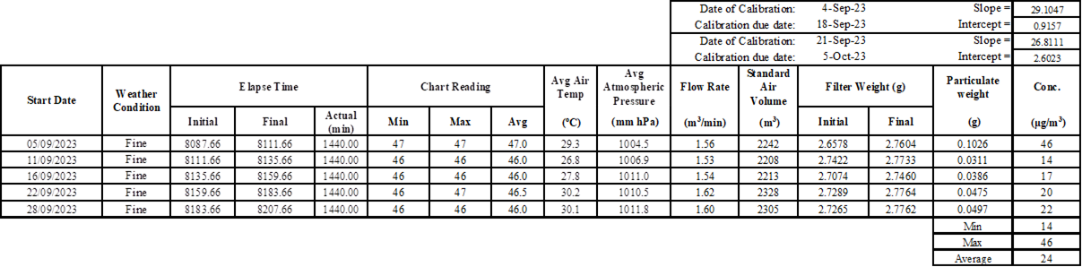 Construction dust (24-hour TSP) monitoring