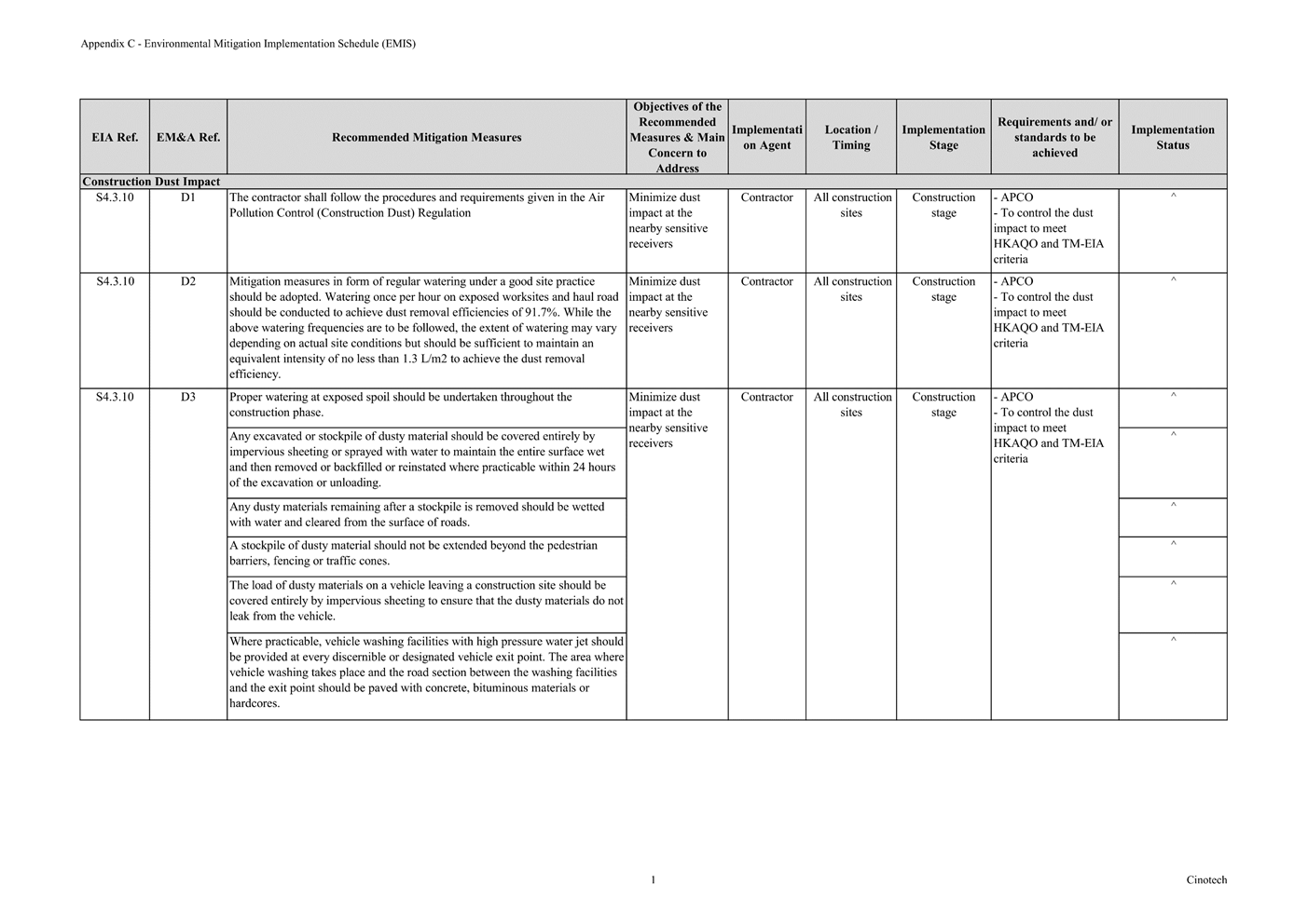 F. Environmental Mitigation Implementation Schedule (EMIS)