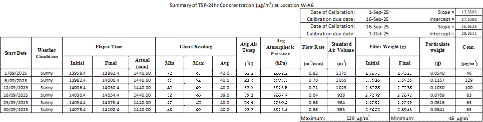 A.5 Joint weekly site inspections were conducted by representatives of the Contractor, Engineer and Contractor’s ET on 4, 11, 17 and 25 September 2025. A joint site inspection with IEC was undertaken on 17 September 2025. Details of the audit findings and implementation status are presented in Section 5.