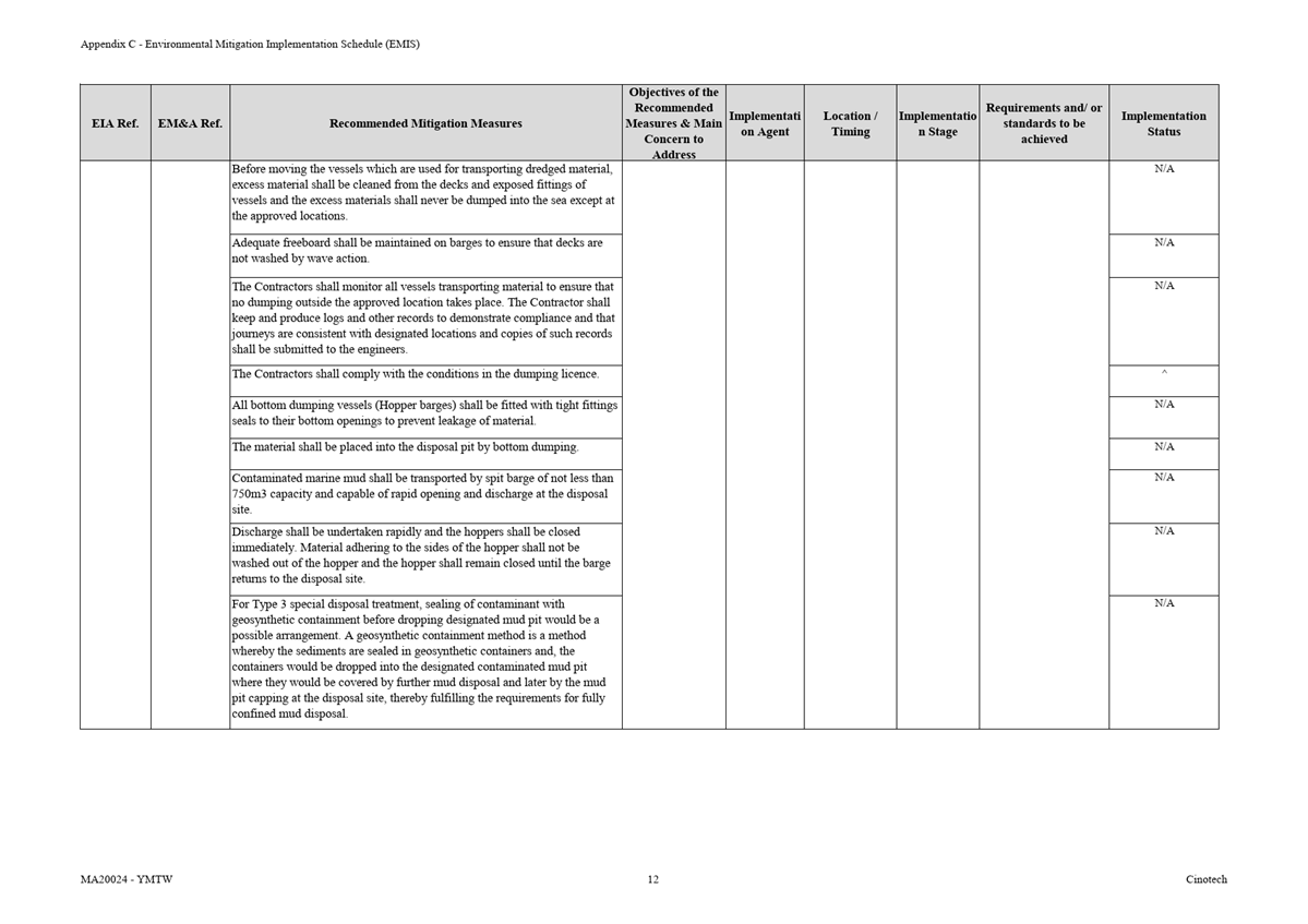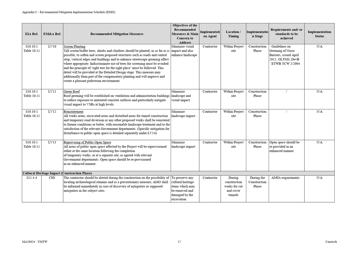 F. Environmental Mitigation Implementation Schedule (EMIS)