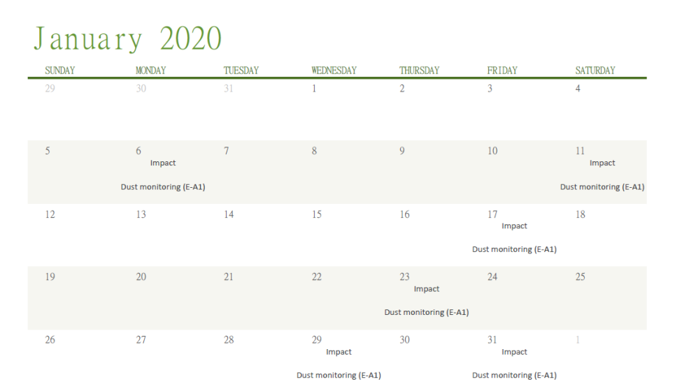 Monitoring Schedule of the Coming Month