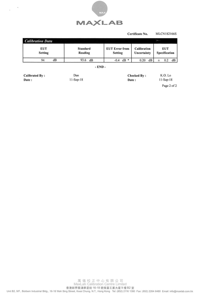 I. Calibration Certificate (Noise)